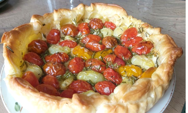 I den slags tærter er der ingen æggemasse. Det er en enkel form for tærte, der kun består af butterdej, sennep, ost, tomater, rosmarin og olivenolie.