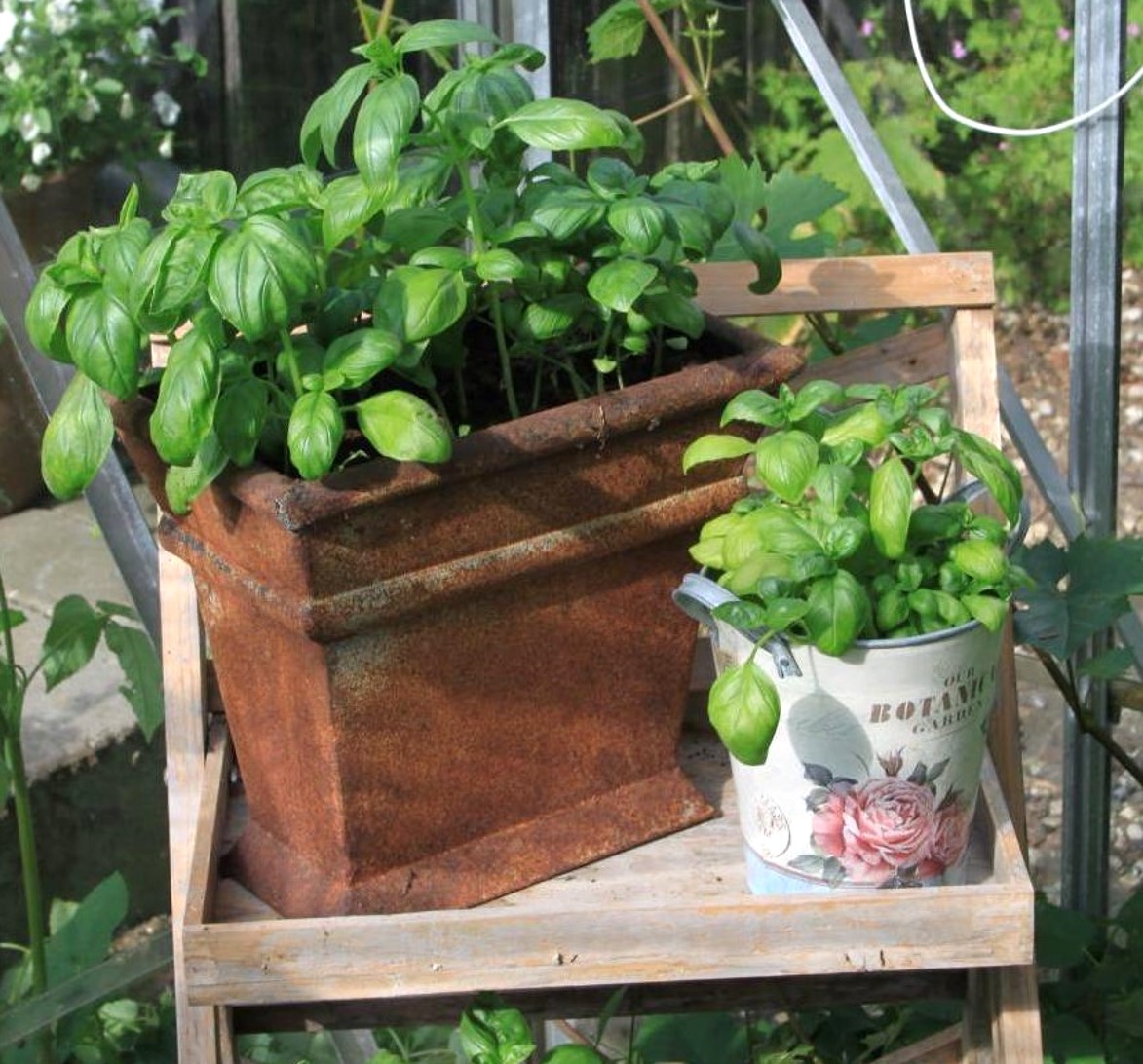 Og i øvrigt: basilikum. Man kan købe sig fattig i potter med krydderurter, men man kan også få fuld valuta for pengene ved at købe én potte med basilikum, der kan levere basilikum til resten af sommeren. Jeg nipper topskuddene af og planter de enkelte planter med god afstand i en stor krukke. Nu er rødderne ikke klemt længere, og de vokser og vokser.