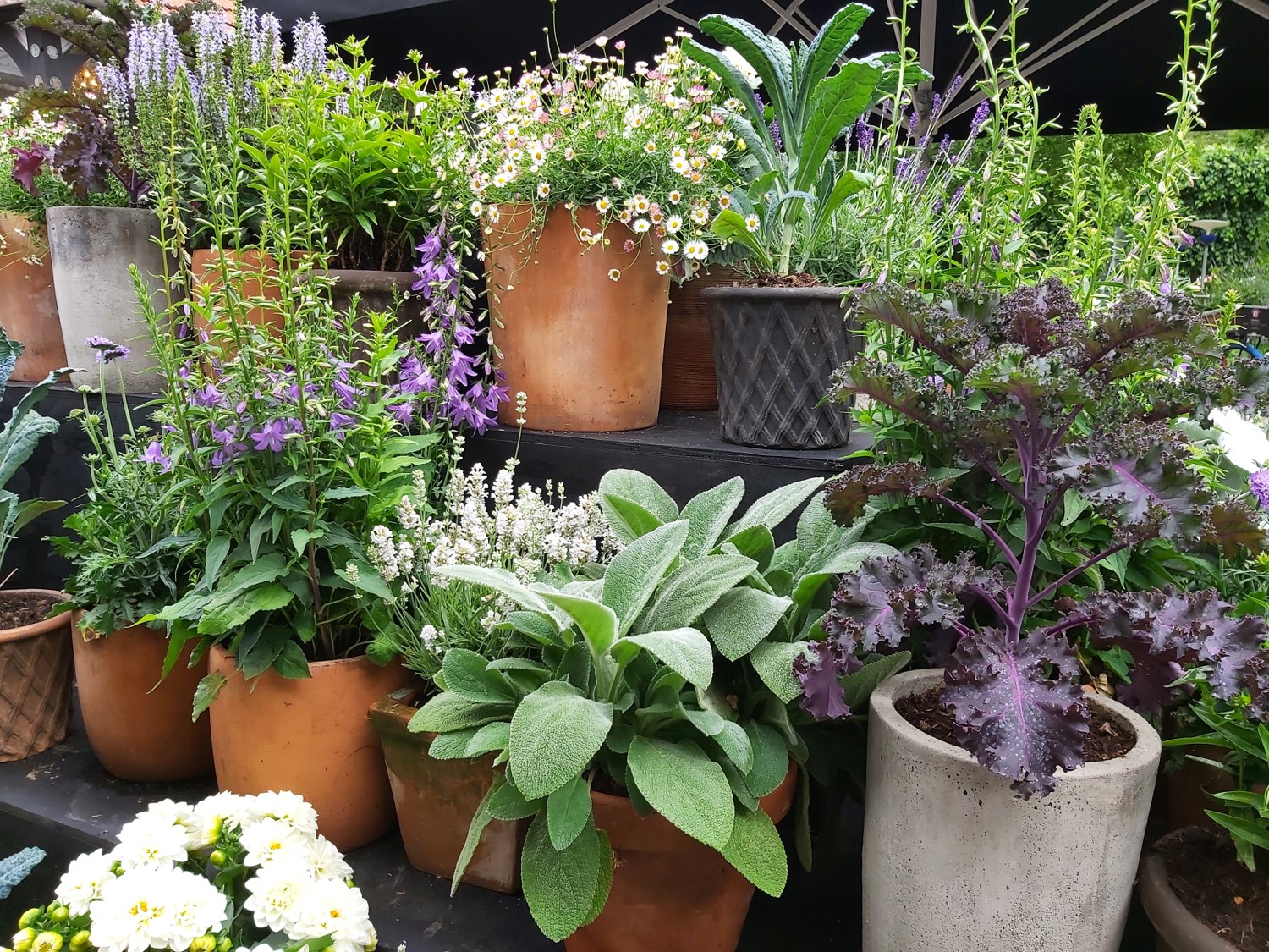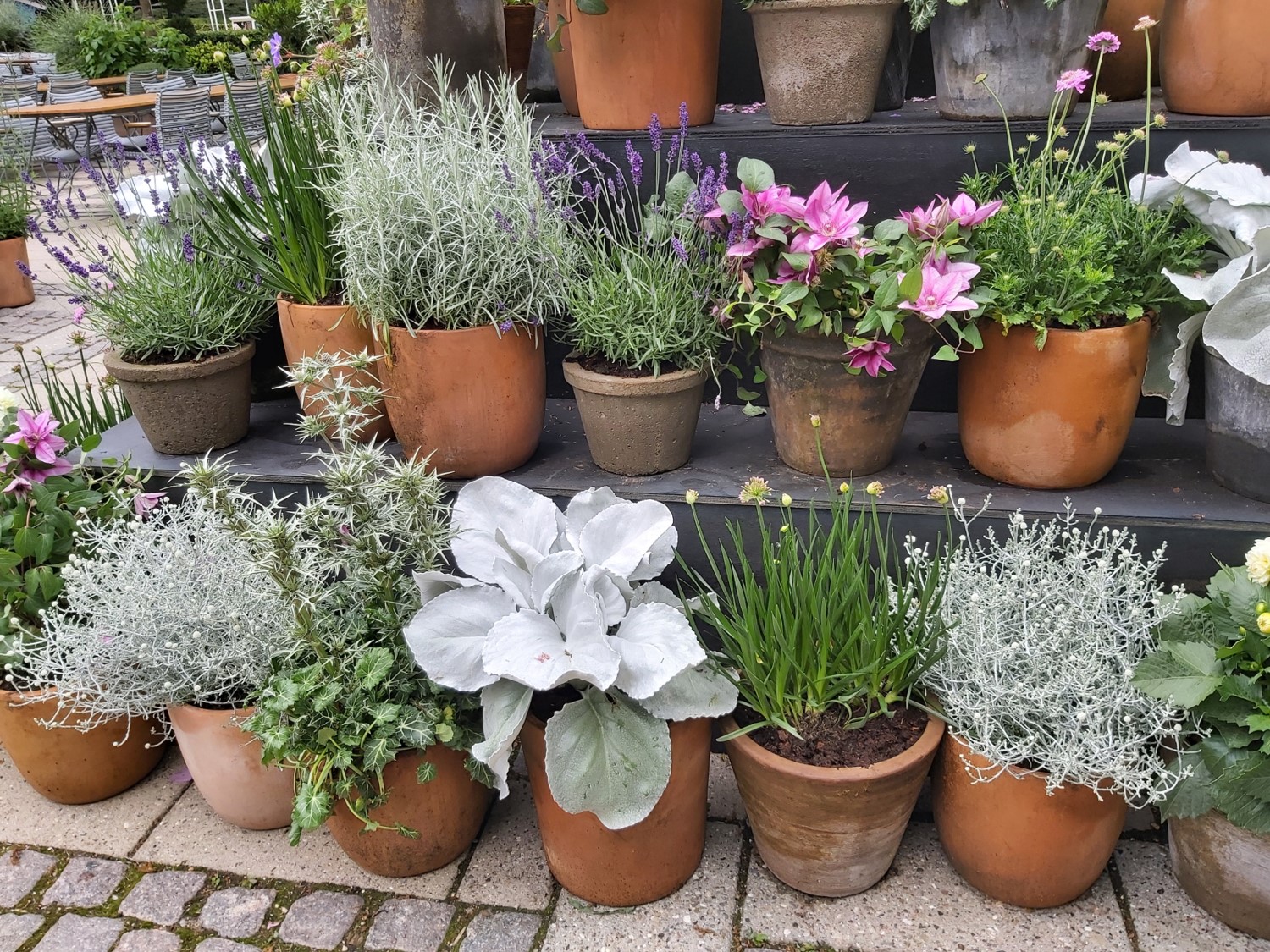 Alle de 300 smukke krukker er doneret af b-green. Det synes jeg er et stort, smukt og generøst bidrag, for det er jo ikke kun blomsterne, man ser. Krukkerne, planterne er anbragt i, er lige så vigtige – især i en krukkehave.