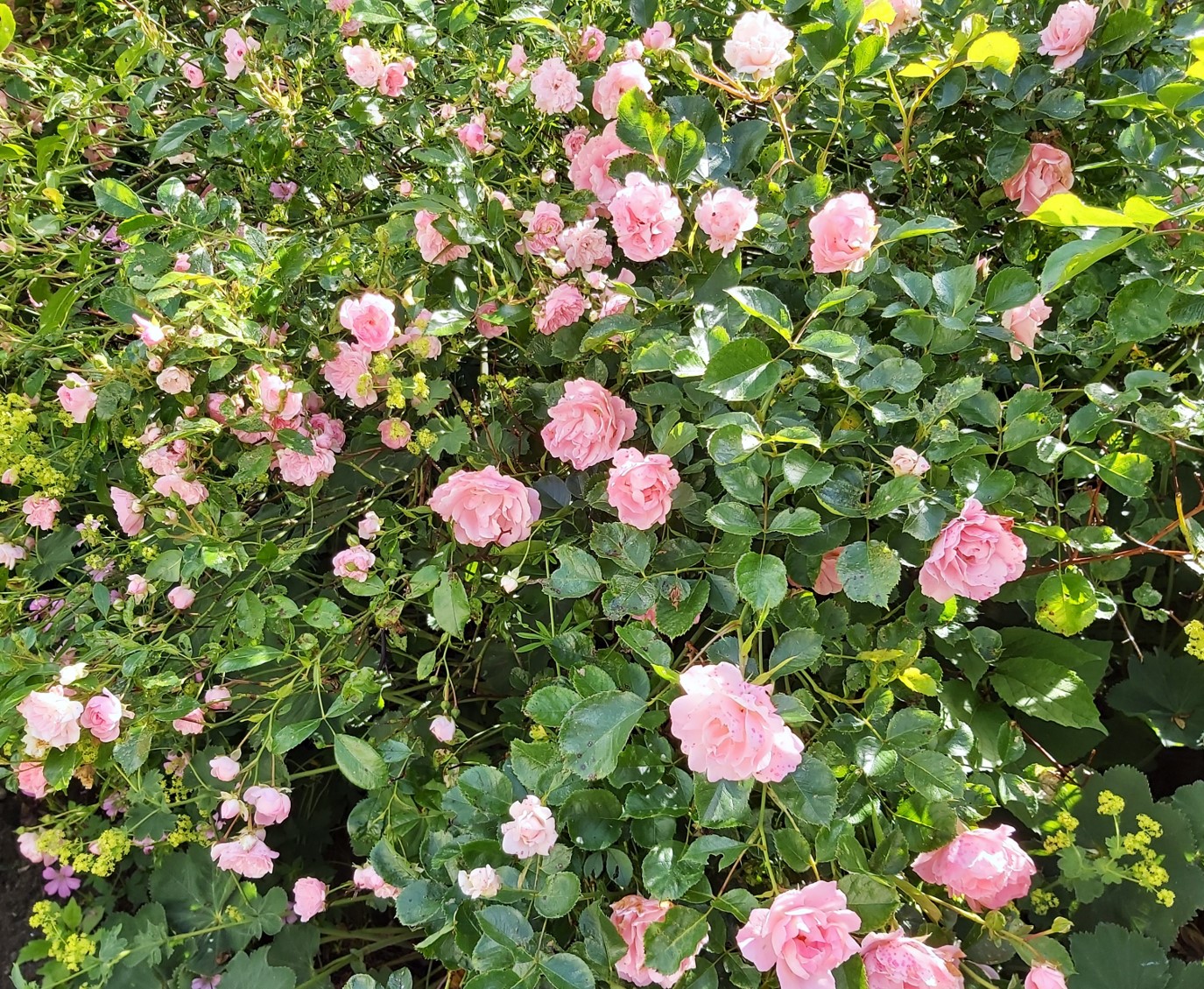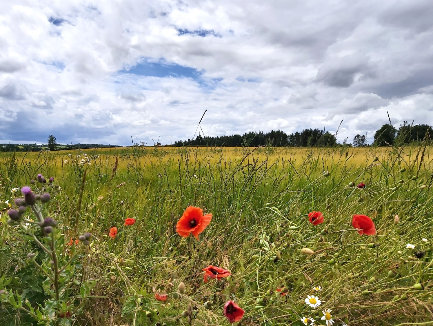 Og der er forskel på de få dage, der skiller ‘somrene’ ad. Farverne skifter gradvist hen over sommeren. Vi ser det så tydeligt her, hvor vi bor. Dybere grønt løv, modnende gulgrønne marker, vild gulerod og rejnfan i grøftekanten. Og roser i haver og hegn.