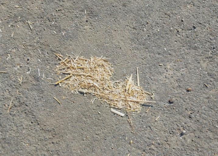 Jeg kørte bag en kornvogn i dag. Det gik langsomt, for vognen var tung. Når den drejede, tabte den lidt til spurvene, der hurtigt finder sådan en lille bunke, som de kvidrende kaster sig over – som en lille blafrende sky.