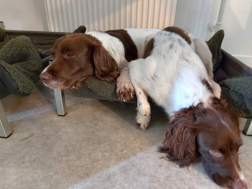 Og en lille tilføjelse: Når de så har løbet og snuset sig godt trætte, er det så hyggeligt at klemme sig sammen i én kurv og blive tør og varm igen 🙂