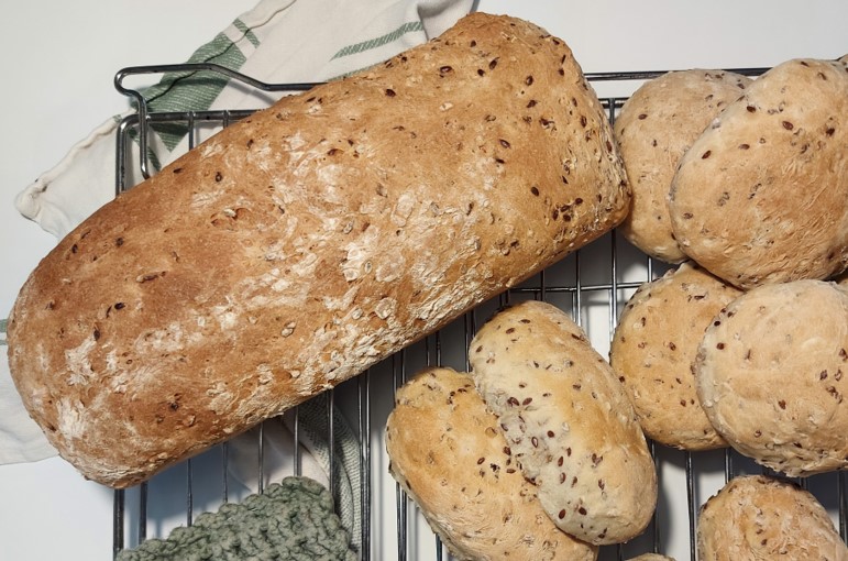Dejen er lige god til brød og boller, og portionen her rækker til 10-12 boller og et stort brød – bagt i en rugbrødsform.