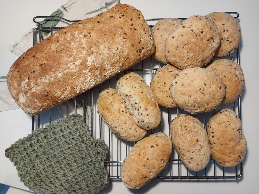 Bollerne skal bages omkring 20-23 minutter på 200 grader – brød mellem 30 og 45 minutter – afhængigt af størrelse.