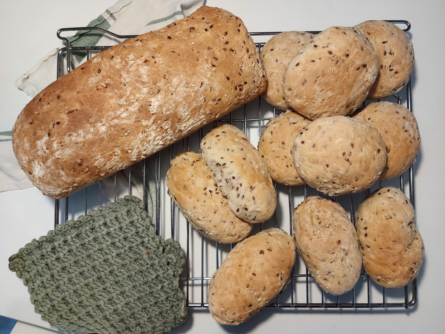 Dejen er lige god til brød og boller, og portionen her rækker til 10-12 boller og et stort brød – bagt i en rugbrødsform.