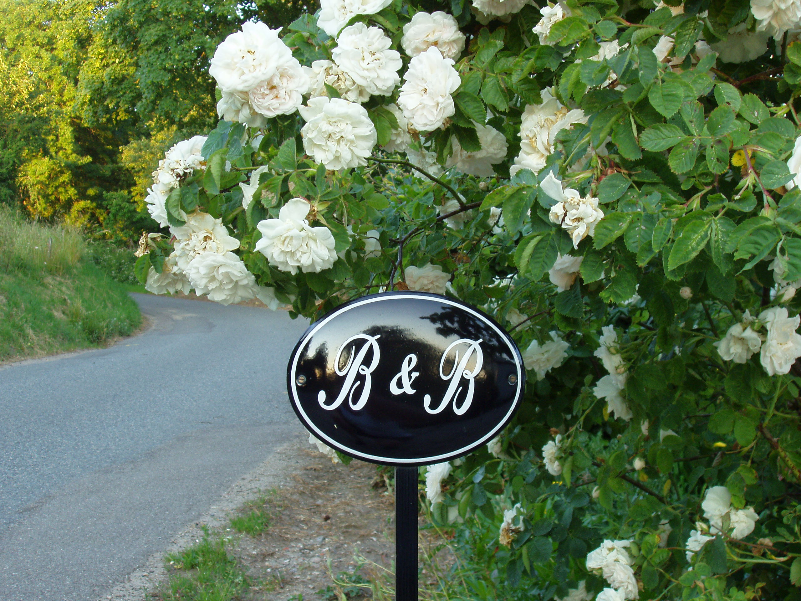 2. Hvor er det blevet fint, selv om det er lidt trist, hvis den hvide rose på billedet med B&B- skiltet er blevet fældet. For den er da så smuk, men jeg er jo også vild med roser.