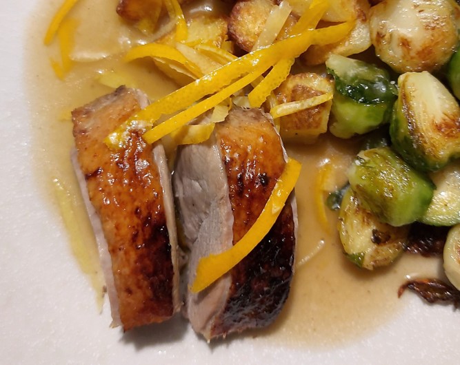 I England har vi fået and med kirsebærsauce, og i Frankrig laver de den med appelsin. Den appelsinsovs – sauce – sovs? – kommer der en opskrift på her.