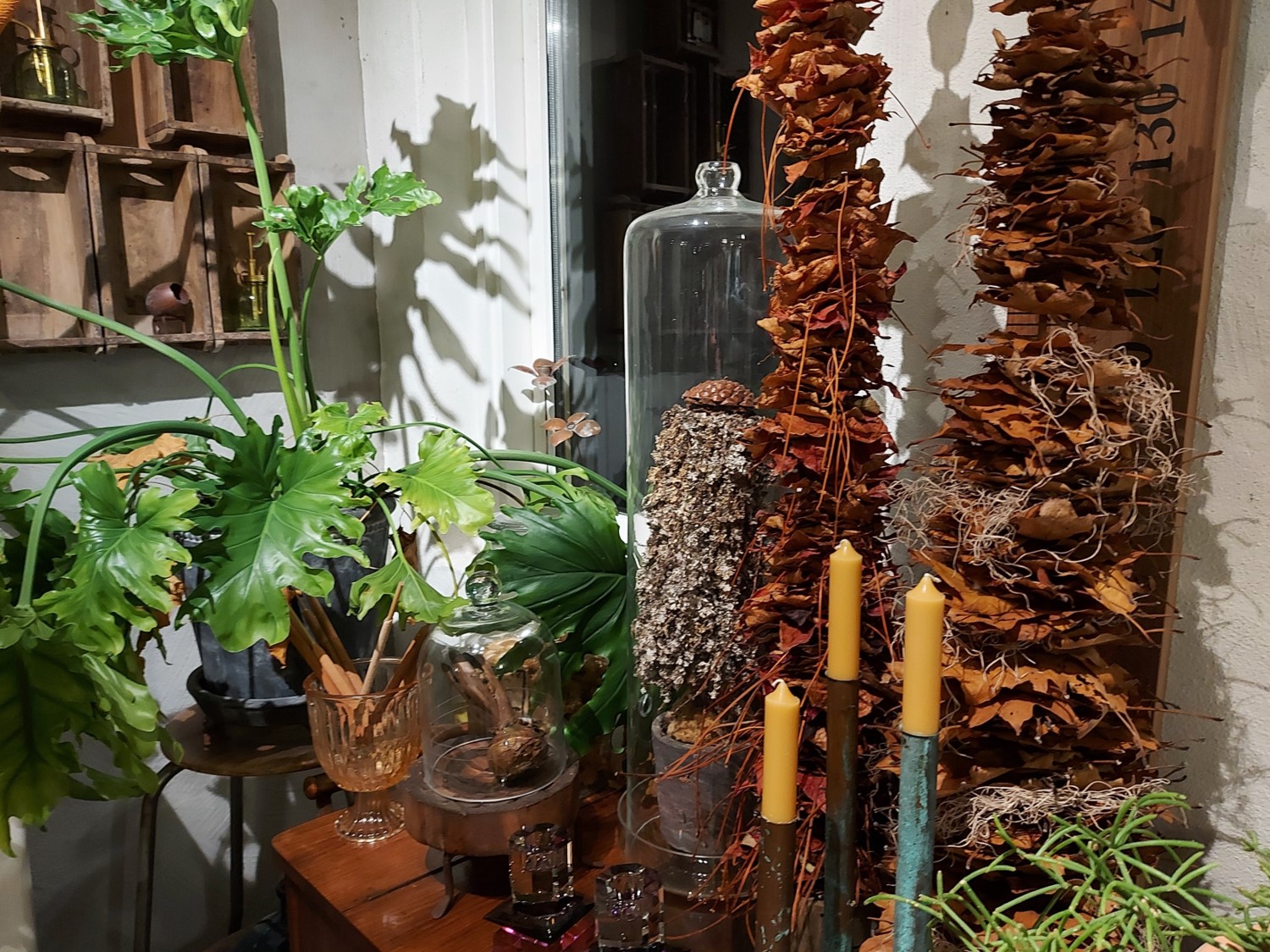 Kransen blev flot, og Margits univers i det store kursuslokale/butik er noget så inspirerende at være i. Ideerne står i kø, og sådan er det jo, når det er bedst.