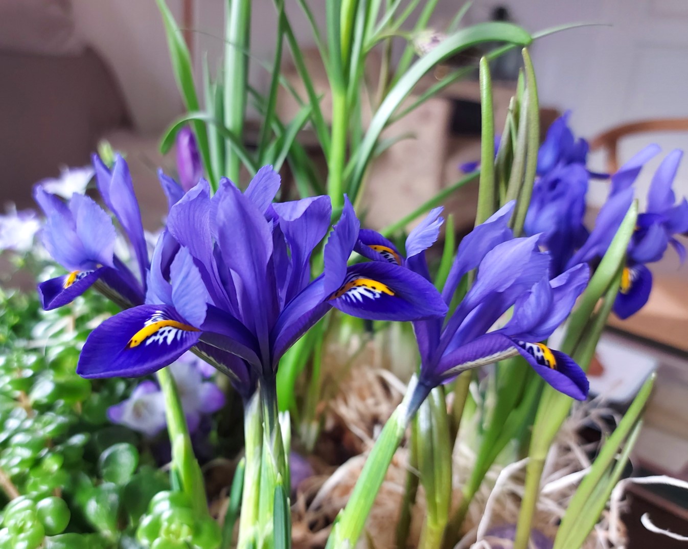 krokus, vibeæg og endnu en campanula – en klokkeblomst med de fineste farveskift i hver blomst.