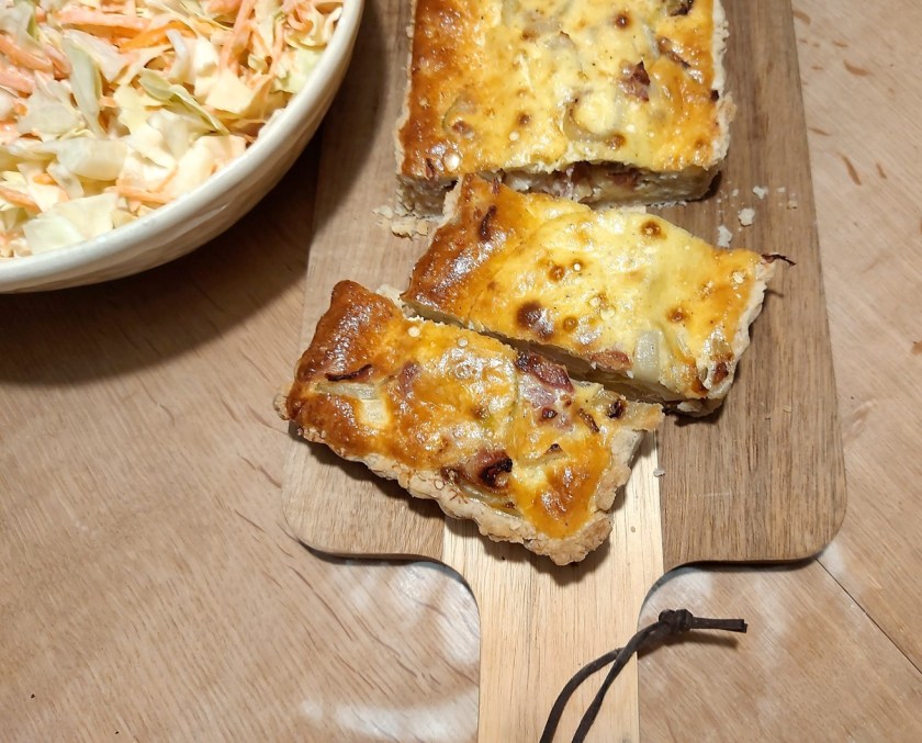 I got a new pie form – a square one with a loose bottom plate. That way you can get the quiche out easily without breaking it. The square quiche looks so pretty. I guess my husband’s enthusiasm for quiche is waning a bit and that I’ll have to use the form for baking a fruit pie of some kind soon.