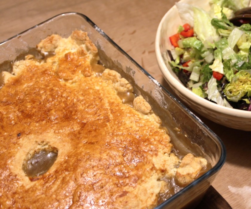 Man kan også putte hele herligheden i et ovnfast fad og dække det med et låg af den slags dej, vi normalt bruger til pot pie. Det er min yndlingsversion, og det er den, jeg vil lave i morgen. Opskriften på dejen til låget finder du her.