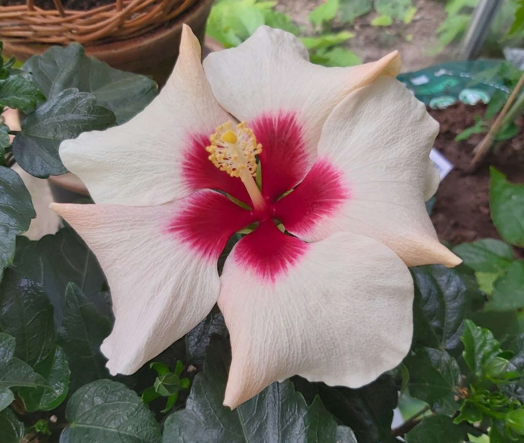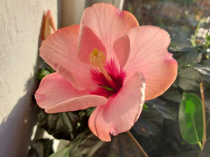 Det samme skete med en hvid hibiscus sidste sommer. Inde var blomsterne hvide, men da de kom ud på sommerophold i haven, blev de først en lækker cremerosa