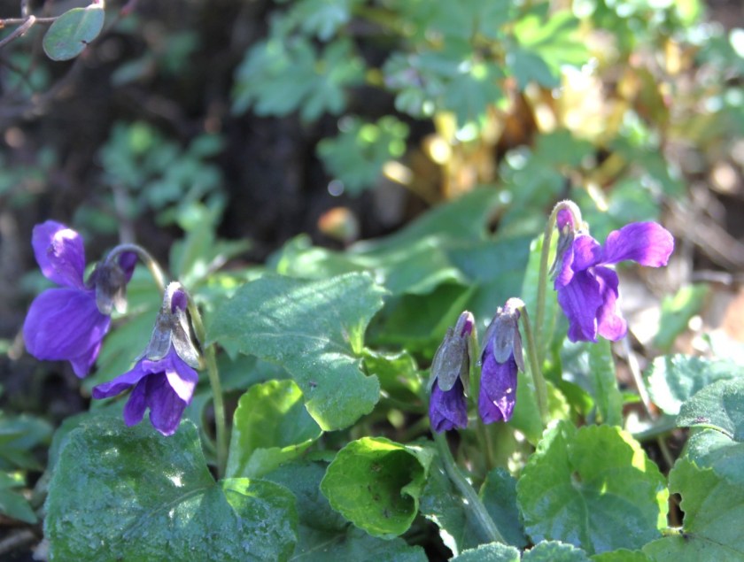 1. De vokser virkelig som ukrudt her, og de opfører meget lidt som bly violer. Snarere som en invaderende hær. Men de dufter, og de er da til at holde i skak i modsætning til så meget andet 🙂