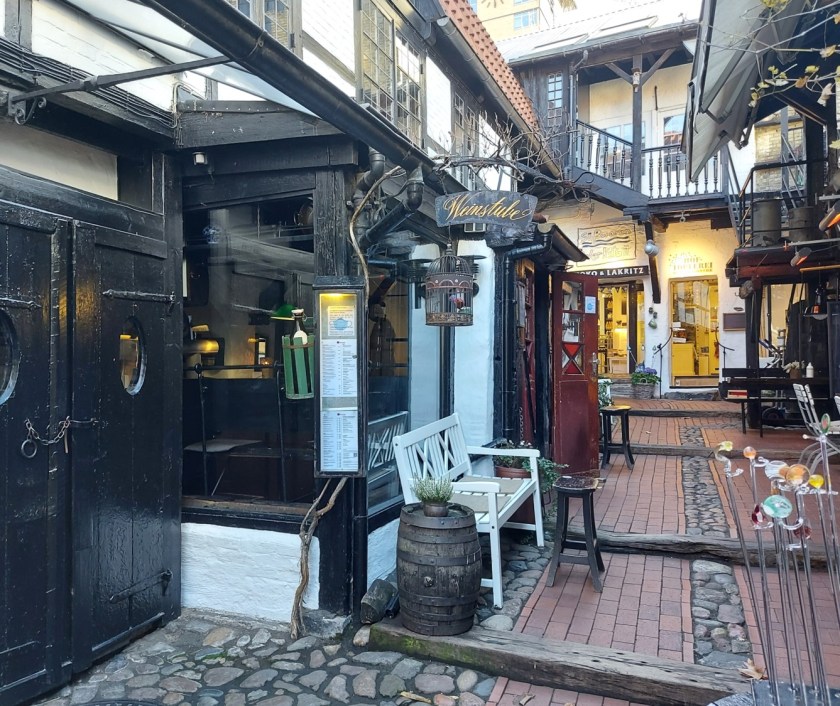 Tillykke med manden igår🇩🇰. God ide med sådan en udflugt til Flensborg som er min fødeby. Sjovt nok var vi der forrige weekend i anledning af en 80 års fødselsdag. Vi kørte derned fredag morgen og hjem igen om søndagen. Var selvfølgelig i Rote Strasse og ind og kigge i baggårdene, så også den fine engletrompet. Vi spiser også gerne i Gnomenkeller hvor der er hyggeligt og de laver god mad. I skulle også prøve “Im alten Speicher” – det er også godt.