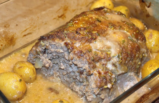 Til sidst – for at finde det femte af dagens 5 gode – skal vi en tur til USA. Meatloaf. Et gammeldags, amerikansk meatloaf. Med knuste saltkiks, Worcestershire sauce, senneps- og hvidløgspulver i farsen. Amerikanerne putter som regel et tykt, hjemmekrydret lag ketchup på toppen. Det ser ikke så kønt ud, men det smager altså rigtig godt. Awesome, som de siger over there.