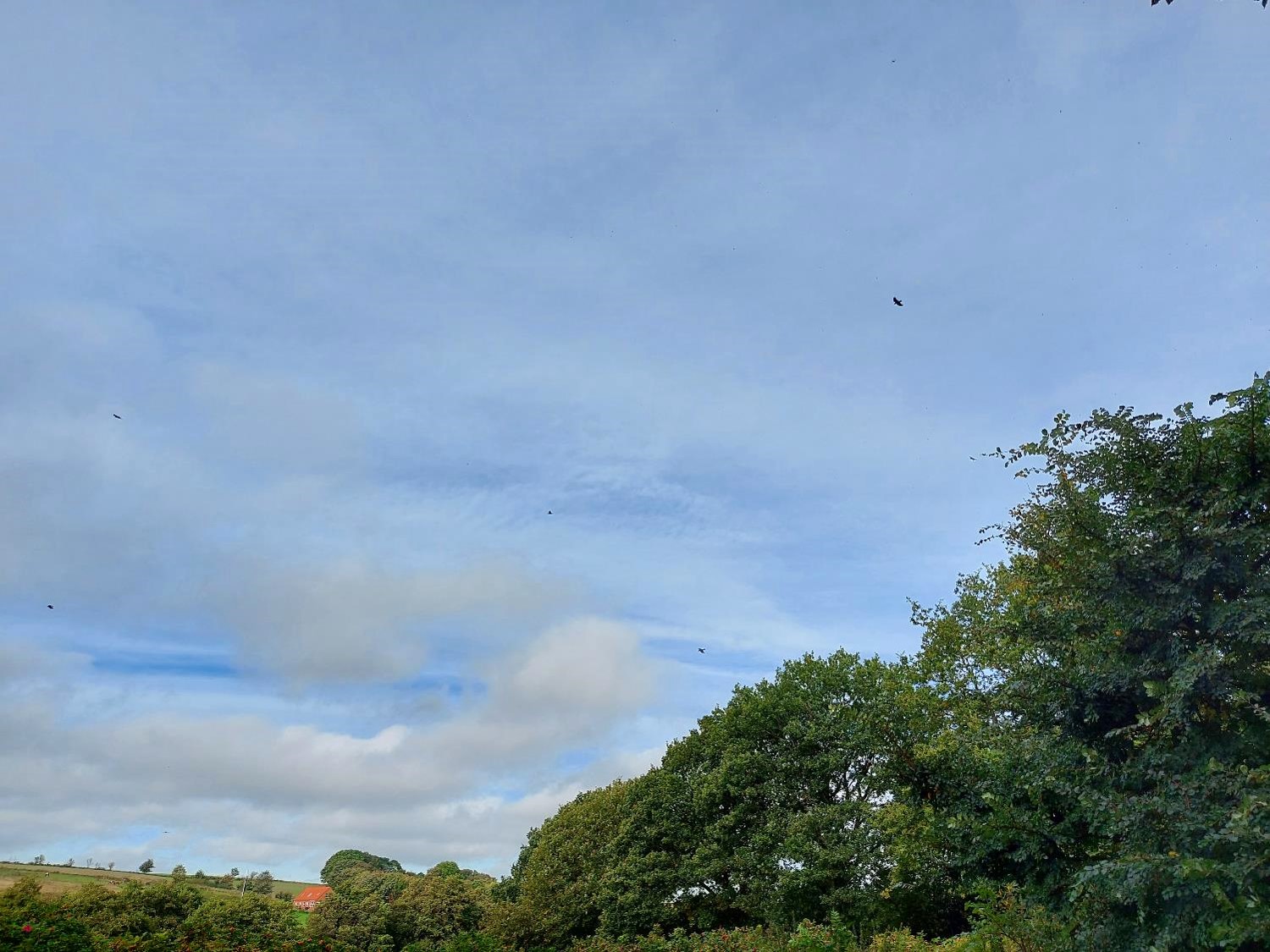Den lange række af egetræer ned langs vejen ind mod engen er fyldt med agern lige nu. Råger og krager holder fest.