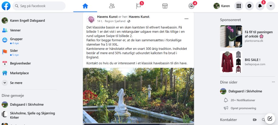 Jeg er kun på FB for at se, hvad der rør sig i de grupper, jeg er medlem af. Mit newsfeed er bare øregas og selvreklamer for FB. Og når de så bliver utilfredse med det, viser de tre poster, og fortæller mig, at jeg skal se at få nogle flere venner for at have noget indhold på min væg 😉