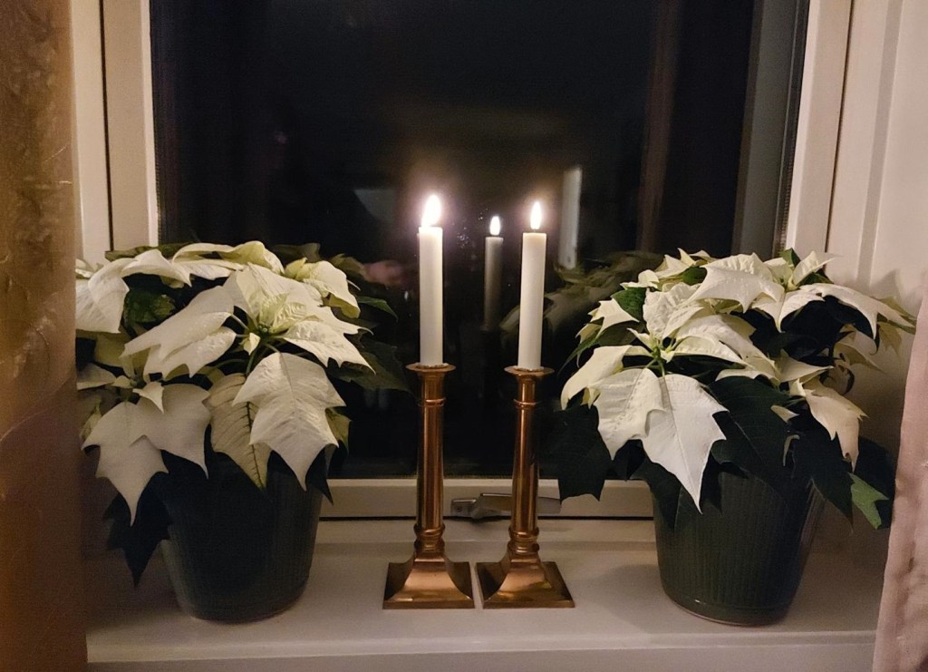 Der er så mange skønne julestjerner, og den gule er helt speciel. Dem med efterårsfarverne er jeg nu også vild med – og alle de hvide nuacner 🙂