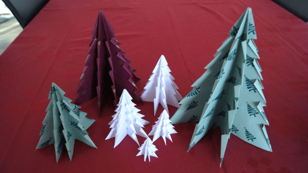 Det er Anni Kellermann, min medwebmaster på Skivholme kirkes hjemmeside, der står for dagens adventsgave, og i dag får vi en vejledning i at folde de kønneste juletræer af papir.