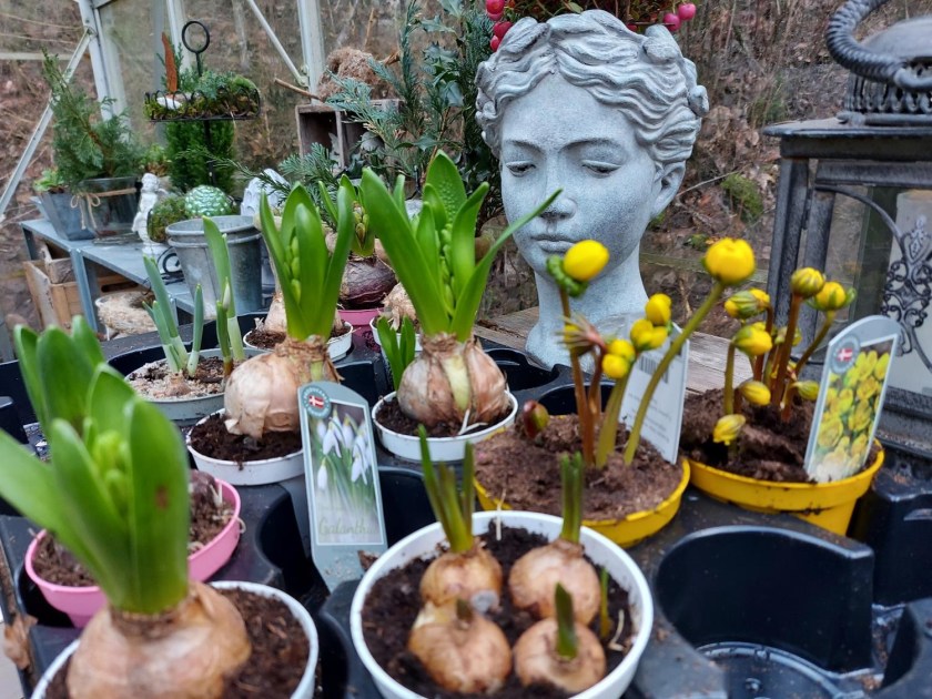 Vinteroprydning i drivhuset. Ud med visne planter og andet skrammel, der lige så stille er kommet snigende. Og ud med julepynten. Men… uden pynt er drivhuset bare kedeligt, og derfor var jeg ekstra glad for at få den skønneste, forsinkede fødselsdagsgave i weekenden.