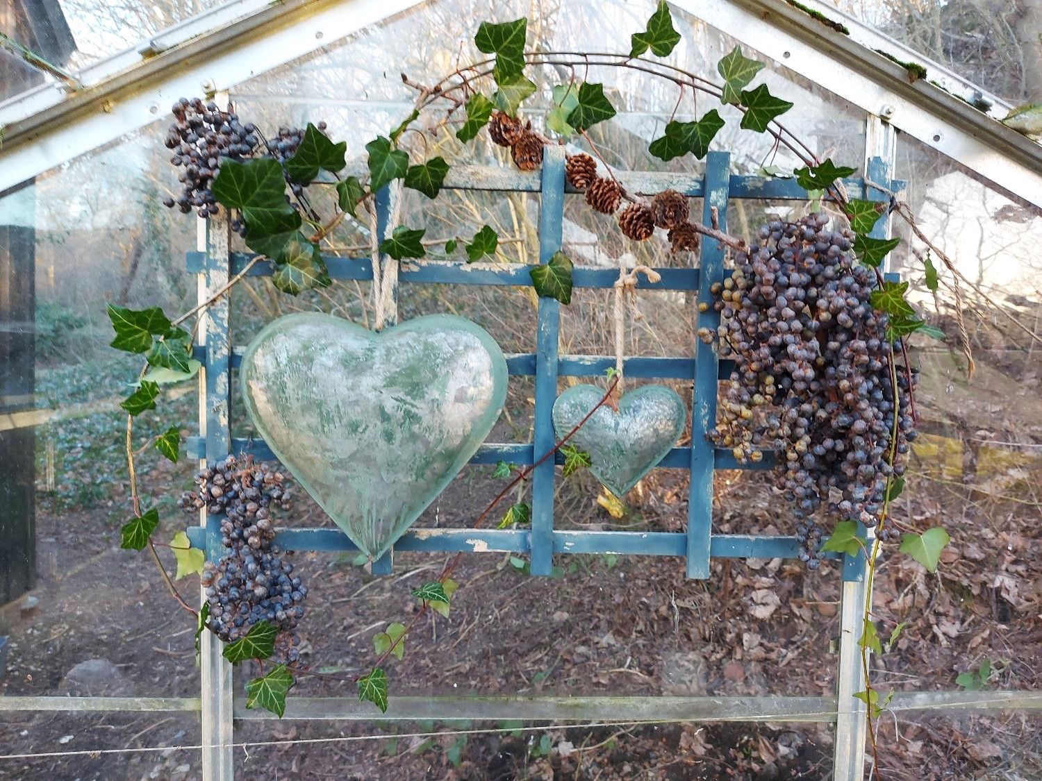 Vinteroprydning i drivhuset. Ud med visne planter og andet skrammel, der lige så stille er kommet snigende. Og ud med julepynten. Men… uden pynt er drivhuset bare kedeligt, og derfor var jeg ekstra glad for at få den skønneste, forsinkede fødselsdagsgave i weekenden.