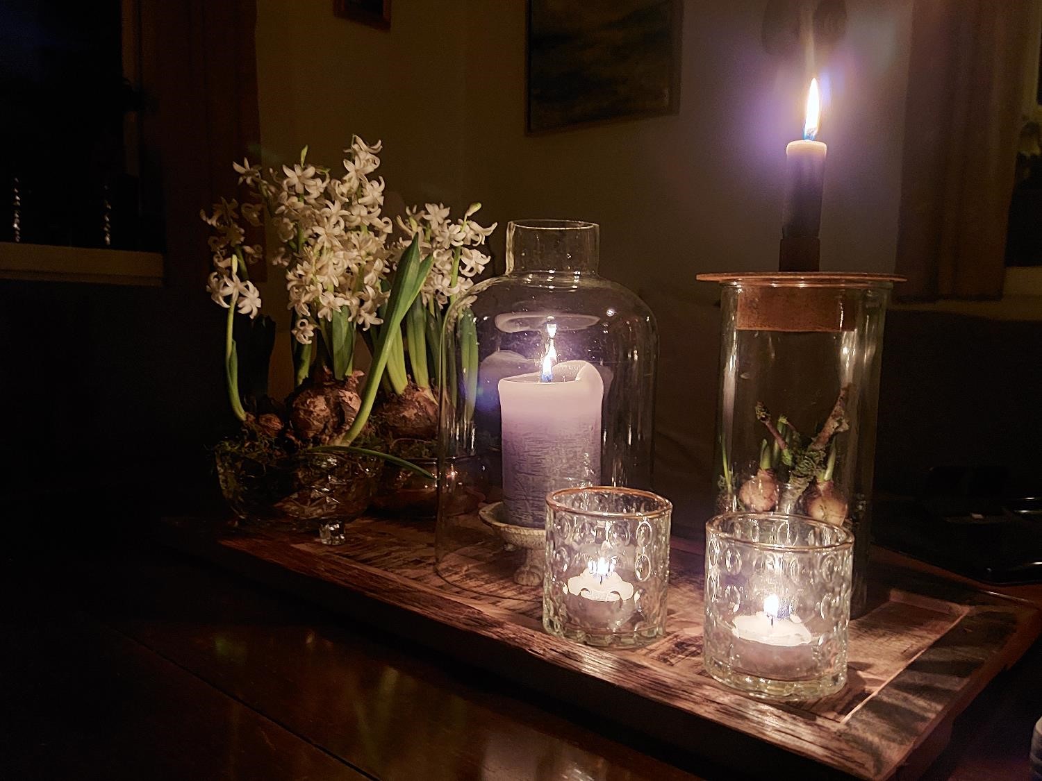 Jeg foretrækker faktisk løg fremfor buketter. Afskårne blomster er så endelige, så tidsbegrænsede. De pynter en uges tid, og det var det. Løgene kan komme igen. Dermed ikke være sagt, at man er lige heldig med dem allesammen. Hvide perlehyacinter gider ikke rigtigt blomstre igen hos os. De blå gør, men ikke de hvide. Og nogle af dem kommer kun et par sæsoner. Men sådan er naturen jo. Ikke ligefrem programmerbar.