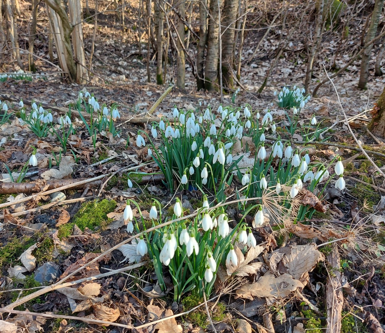 Overalt i haven pibler det frem med spirer nu. Erantis blomstrer sammen med vintergækkerne, der står i driver langs vejen.