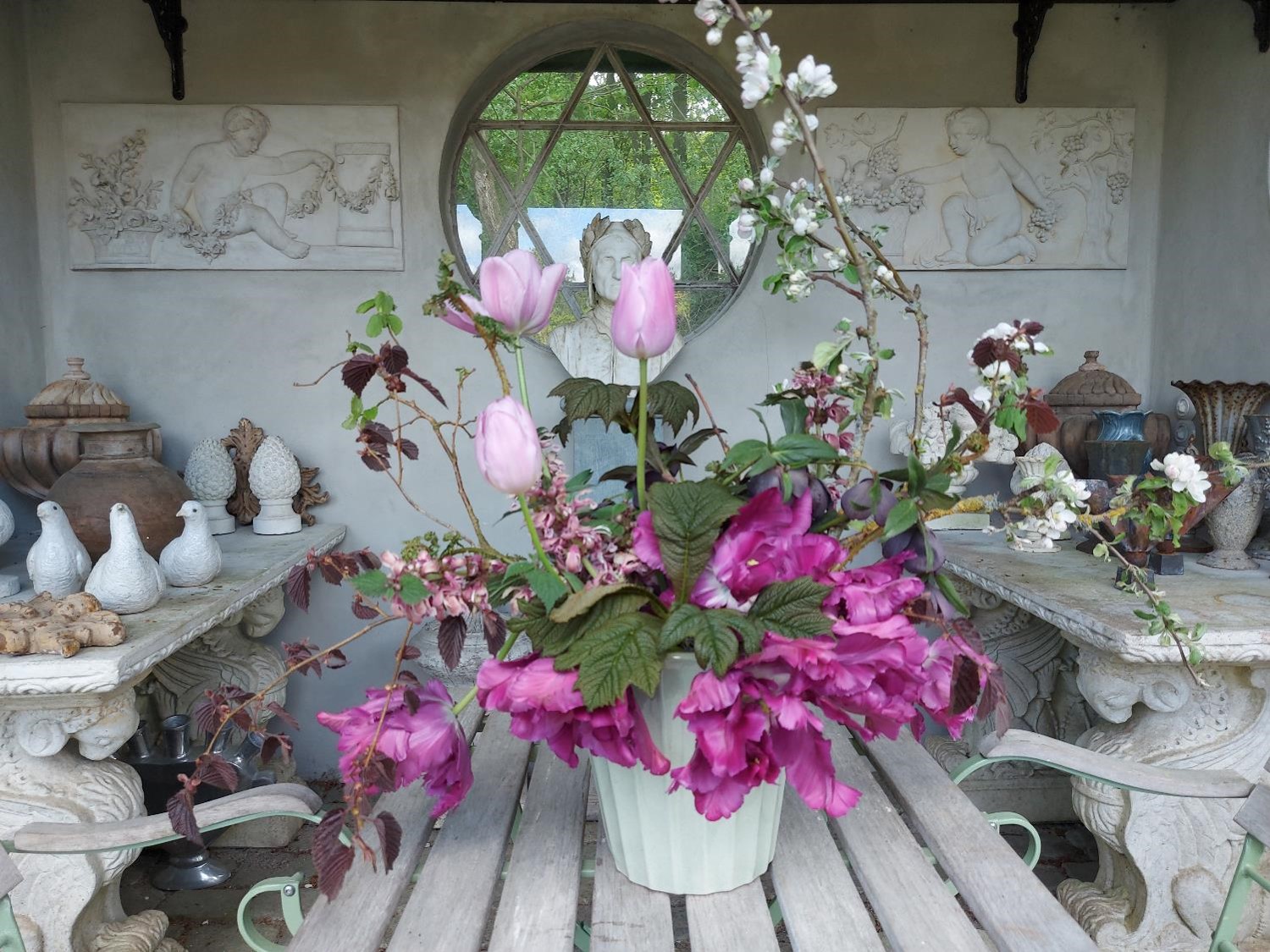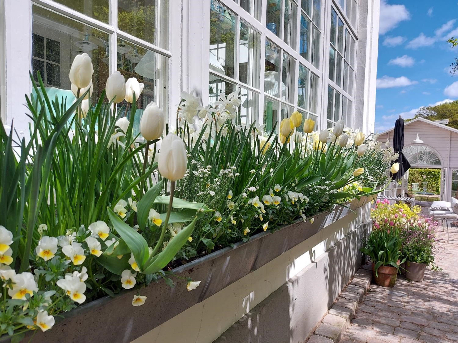 Bag huset finder man den lille romantiske krukkekøkkenhave, hvor alt er i sin vorden, og i skovhaven finder øjnene ro, mens duften af pinseliljer vifter forbi næsen.