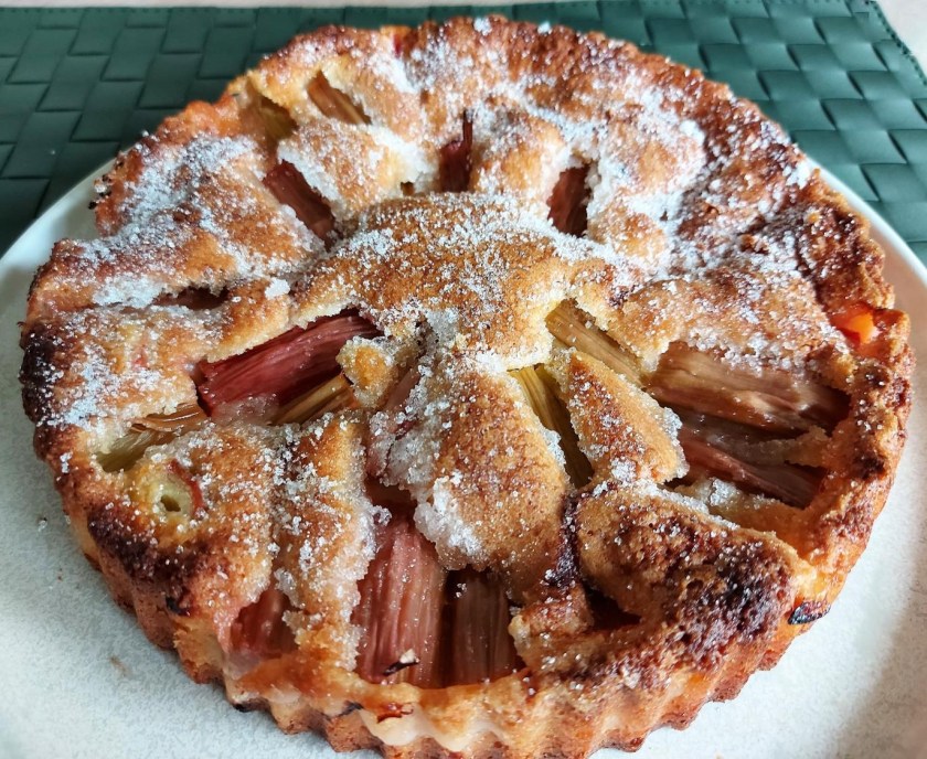 Det er det eneste, jeg for alvor savner her i haven: rabarber, men der er ikke rigtig en god plads, og de fylder ret meget. Jeg har forsøgt mig med forskellige løsninger. Rabarber er den allerbedste nytteplante, jeg kender, og din kage ser fortryllende ud.