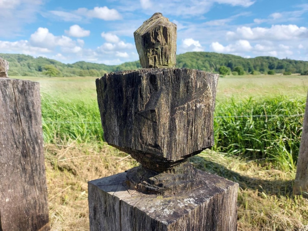Er det ikke fascinerende at se sporene fra dengang og at se, hvor meget man kunne udrette med så lavteknologiske hjælpemidler? Broen er – ligesom palisaderne omkring det gamle Jelling – lavet udelukkende med håndkraft. Ingen save, kun økser og knive. Imponerende. Det må have taget år og et betragteligt antal trælle, der har arbejdet i alle døgnets timer.