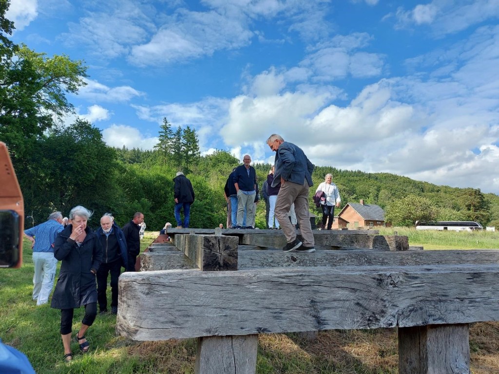 besøgte vi Ravningbroen, en 800 m lang bro over Vejle ådal, bygget omkring år 1000. Den bro sparede de rejsende 3 dages transporttid op og ned af bakker, gennem moser og omkring fjorde.