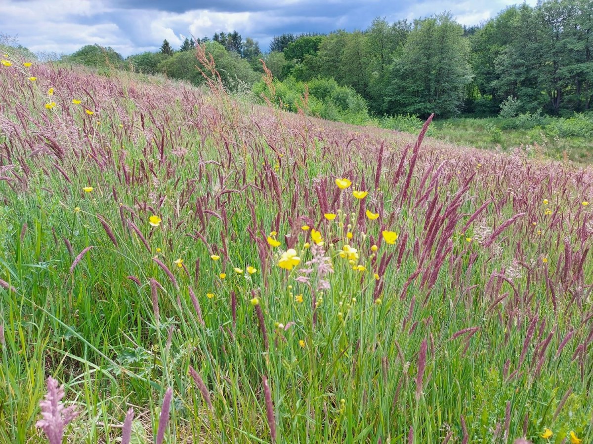 Vi har en lille hunræv, der tusser rundt dernede, og hun er også glad for at undgå de to hunde. Jeg tror nu nok, jeg vil snige mig en tur ned til smørblomsterne alene. For at plukke en stor buket af dem. De er så kønne – ikke mindst i trængsel, som jeg så det her på Ørslev Kloster, som vi besøgte for nogle år siden. Det sted hænger stadig lidt i baghovedet.