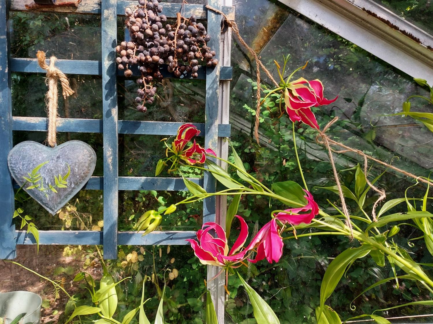 Dipladenia eller ej – der er romantik og eksotisk stemning i drivhuset. Og det er jo det, man har sådan et glashus til her i det omskiftelige, danske vejr: eksotisk stemning, kulørte tomater og masser og masser af chili.