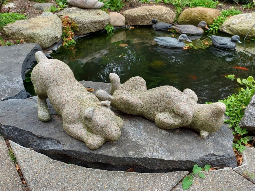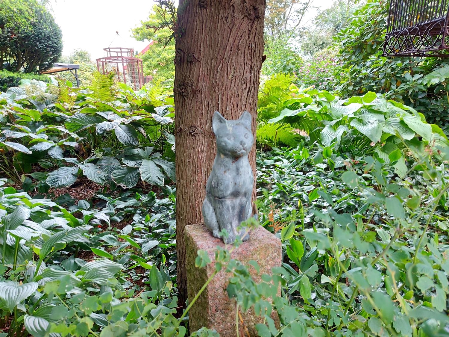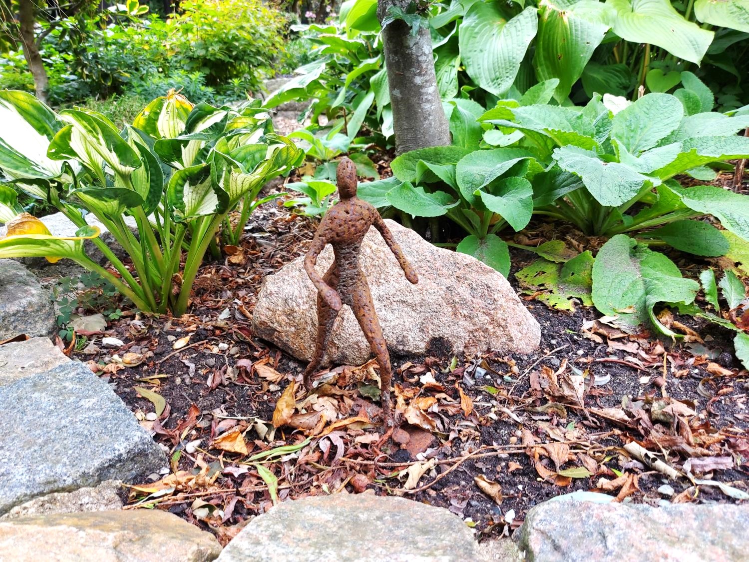 Efter rundturen i galleriet gik vi en hyggelig havetur sammen med Gitte og fik en dejlig havesnak i den frodige, blomstrende have, fyldt med skulpturer og kreative indslag.