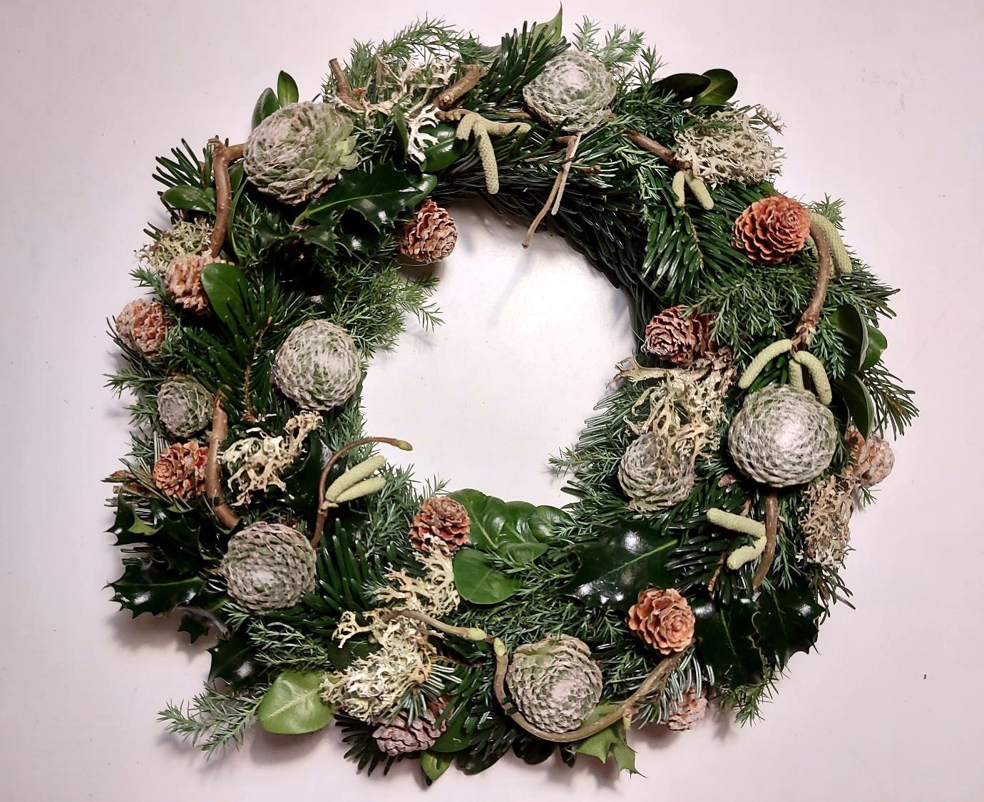 Nu må jeg jo indrømme, at jeg selv satte echeveria i dørkransen i år. Jeg drømte om en mild og fyringsmæssigt billig vinter, og jeg troede nok også lidt på, at den globale opvarmning ville træde til og beskytte dem. Hmmm… Når kransen tør op igen, bliver de udskiftet med husløg, og så holder den sig sikkert pæn det meste af vinteren.