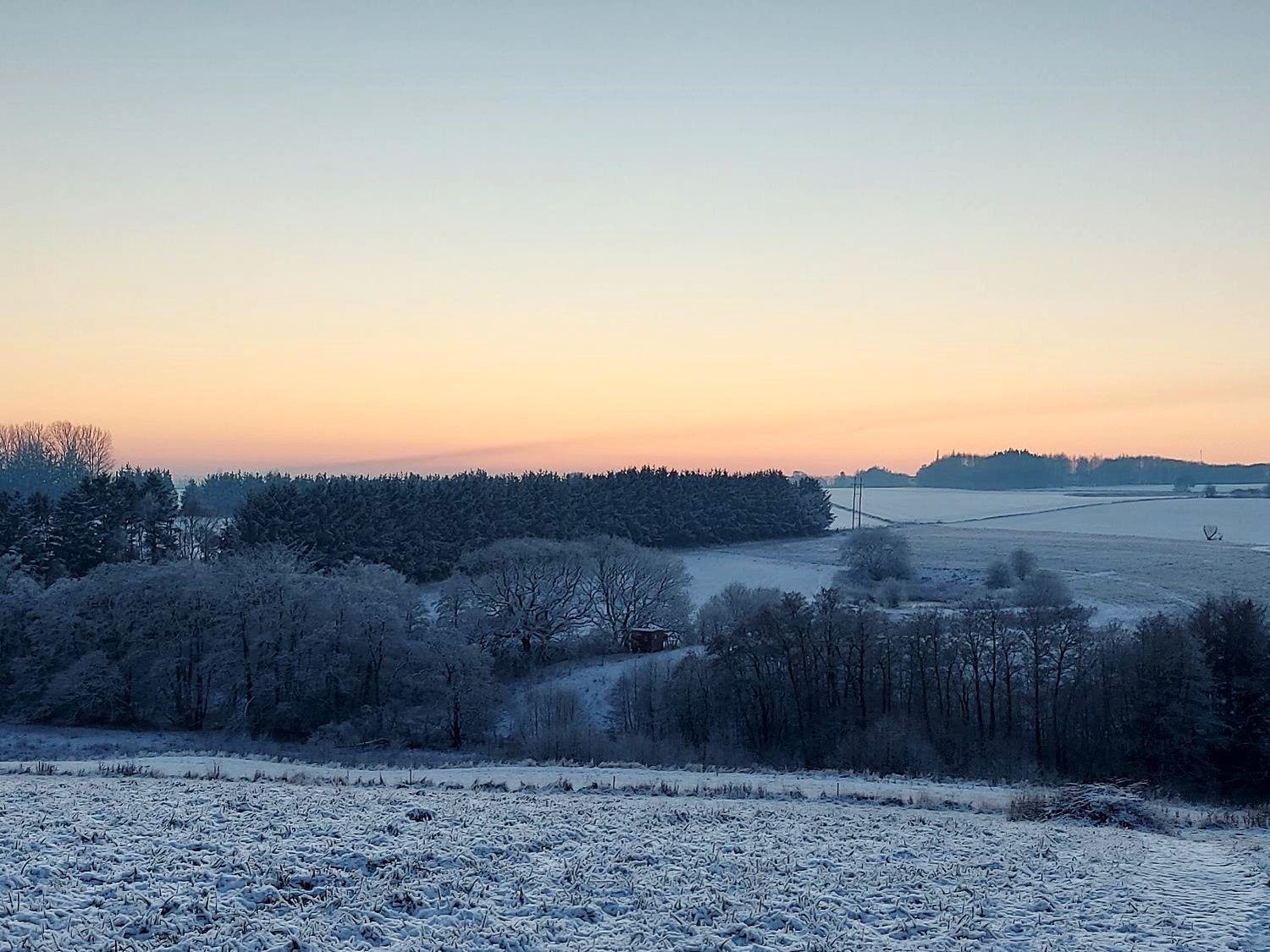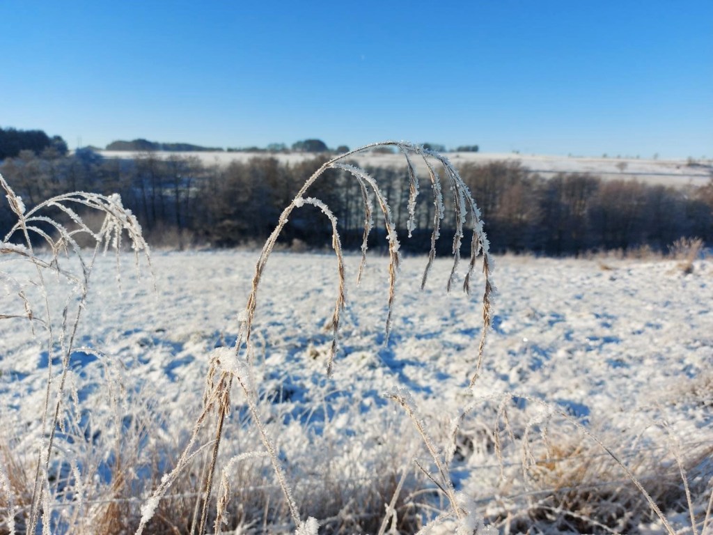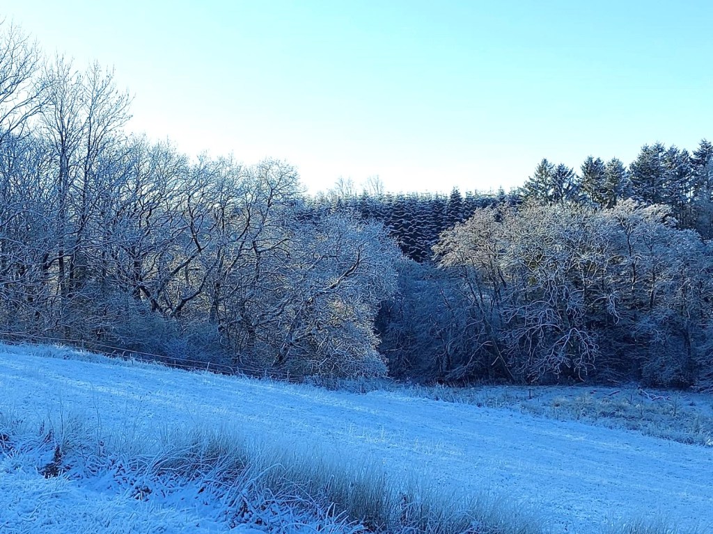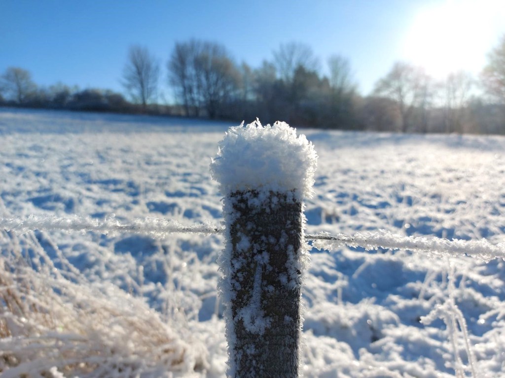 Tindrende frost, hvor lyset spejlede sig i rimen og sendte det direkte ind i vores øjne, der i den grad savner naturligt lys på den her årstid.