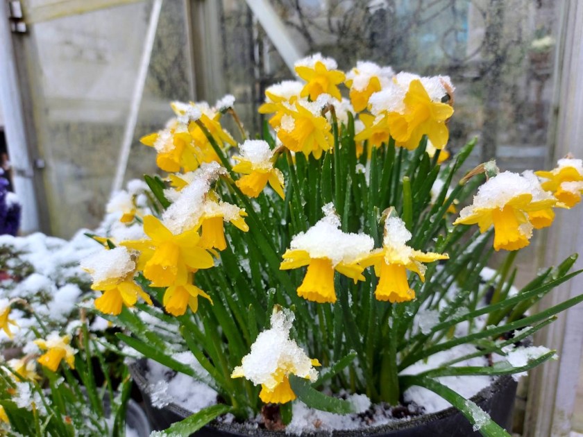 Marts blev til april, og kom der sne. Lettere forsinket er vi nok nogle, der vil mene. Heldigvis varede det ikke så længe.