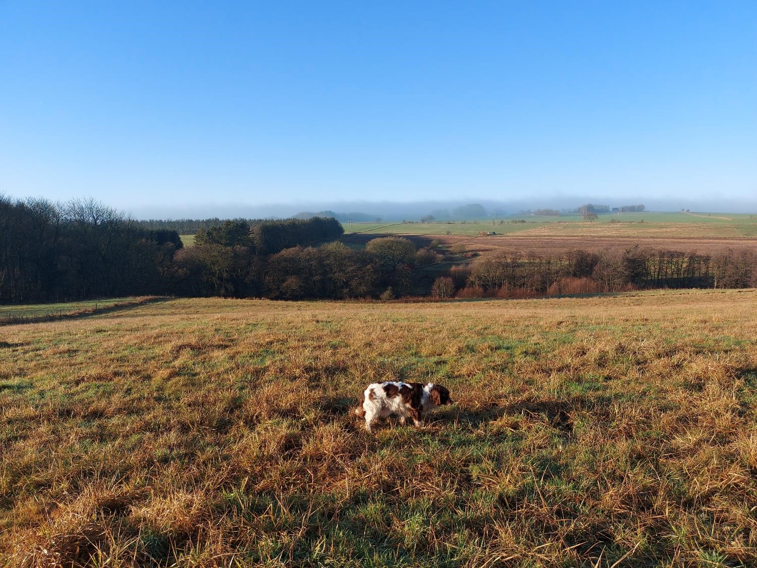 Her i formiddags skinnede solen smukt over græsmarken, da hundene blev luftet, før jeg kørte på arbejde.