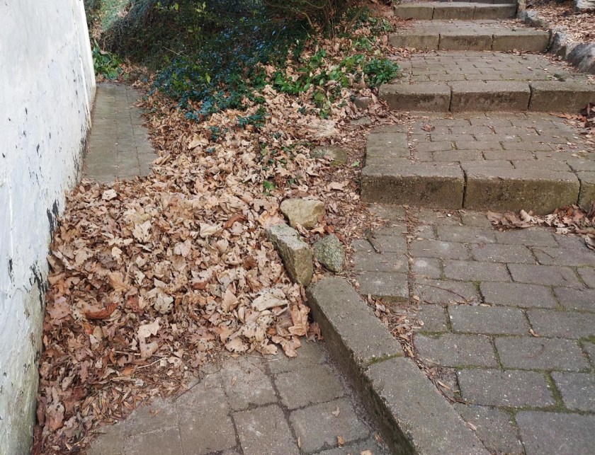 Det blæser igen vildt, og vinden blæser blade ned fra skrænten og ind på alle de sædvanlige hotspots,