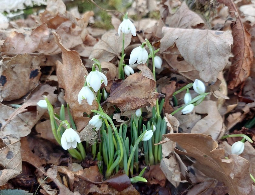 hvor de samler sig i dynger og næsten drukner de små vintergækker.