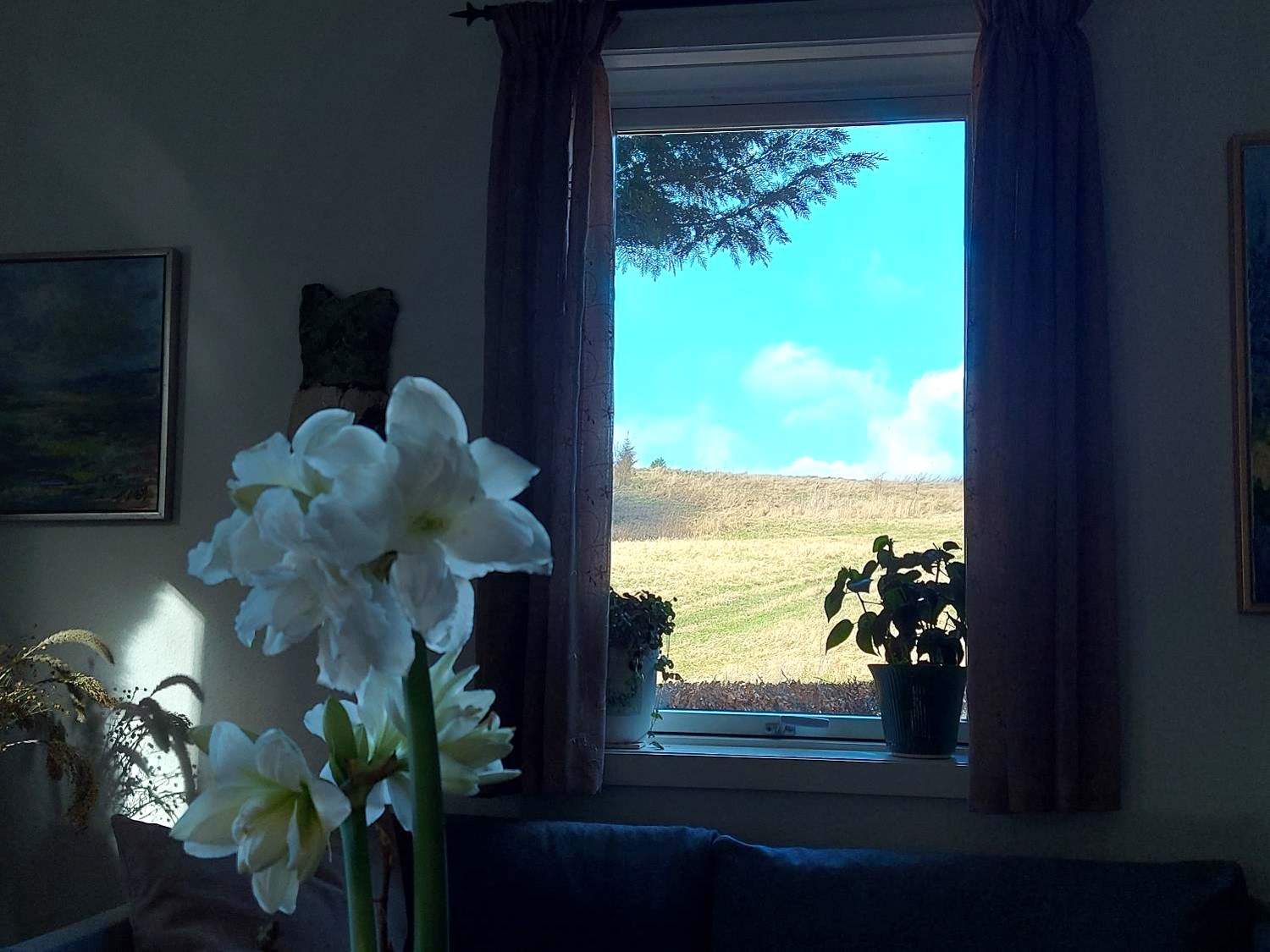 Efter en storm er luften blæst ren, og himlen så blå, at man får sådan en lyst til at gå i haven og ordne, rydde og rive. Det blev da også til lidt, men det var altså en kold vind, og i løbet af eftermiddagen, lokkede den varme stue og et kapitel i bogen mere.