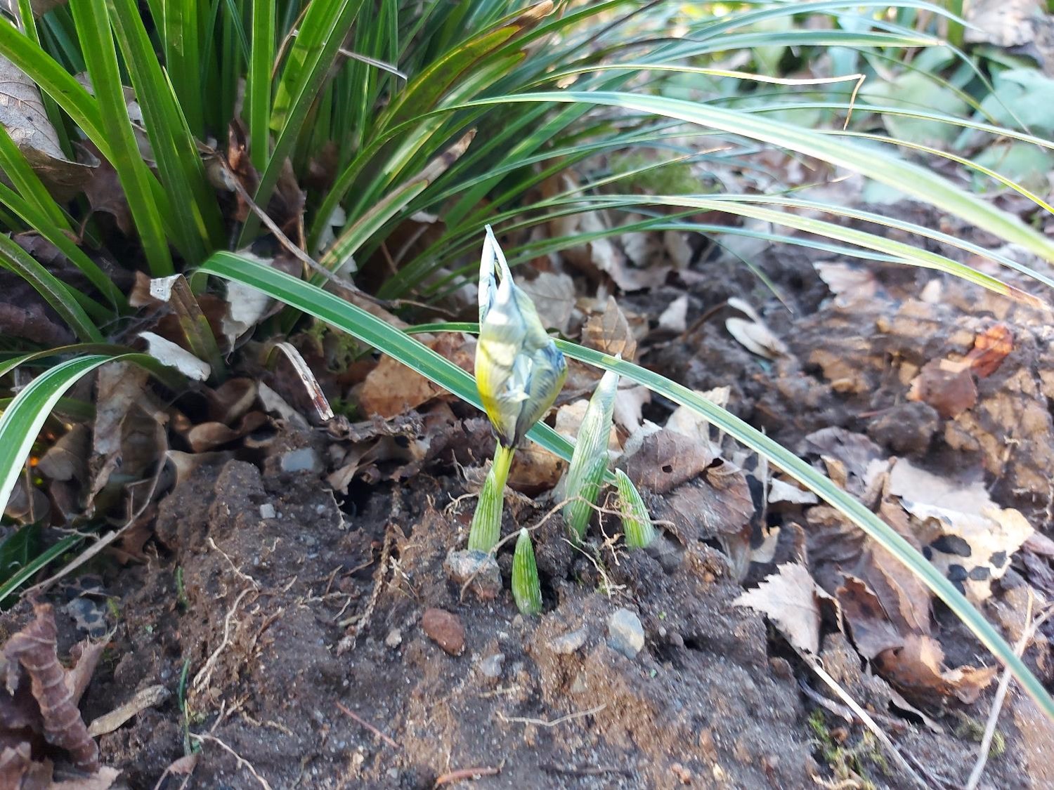 Lørdagens klare lys afslørede, at der er hundredevis af små planter på vej op i skovhaven. Alle de små forårsblomster står på spring.
