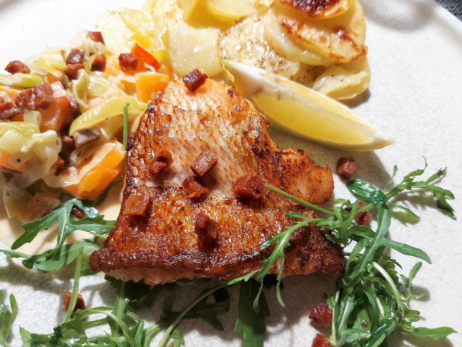 Rødfisk er en lækker, fast fisk, og den er nem at håndtere, når den flinke fiskehandler først har filetteret den. I dag får du opskriften på en rigtig weekendret med rødfiskefilet.