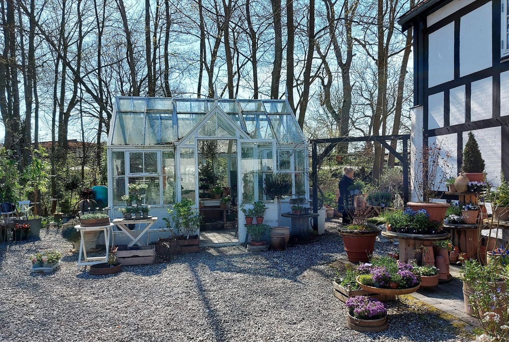 Over os drysser mirabellerne, og skovbunden bag skovhaven er dækket af de vilde, hvide anemoner.