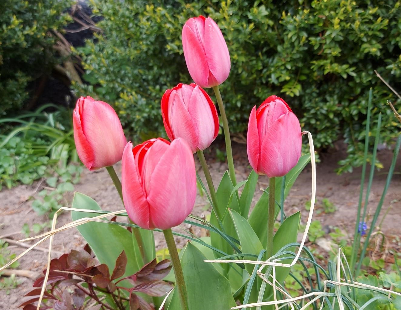 Nu kommer belønningen for de timer, vi tilbragte på de grædende knæ i efteråret. Belønningen for de kolde fingre og tæer – og for de våde arbejdshandsker. Belønningen for, at vi gjorde det alligevel. Lagde løg. For nu blomstrer tulipanerne i haven.