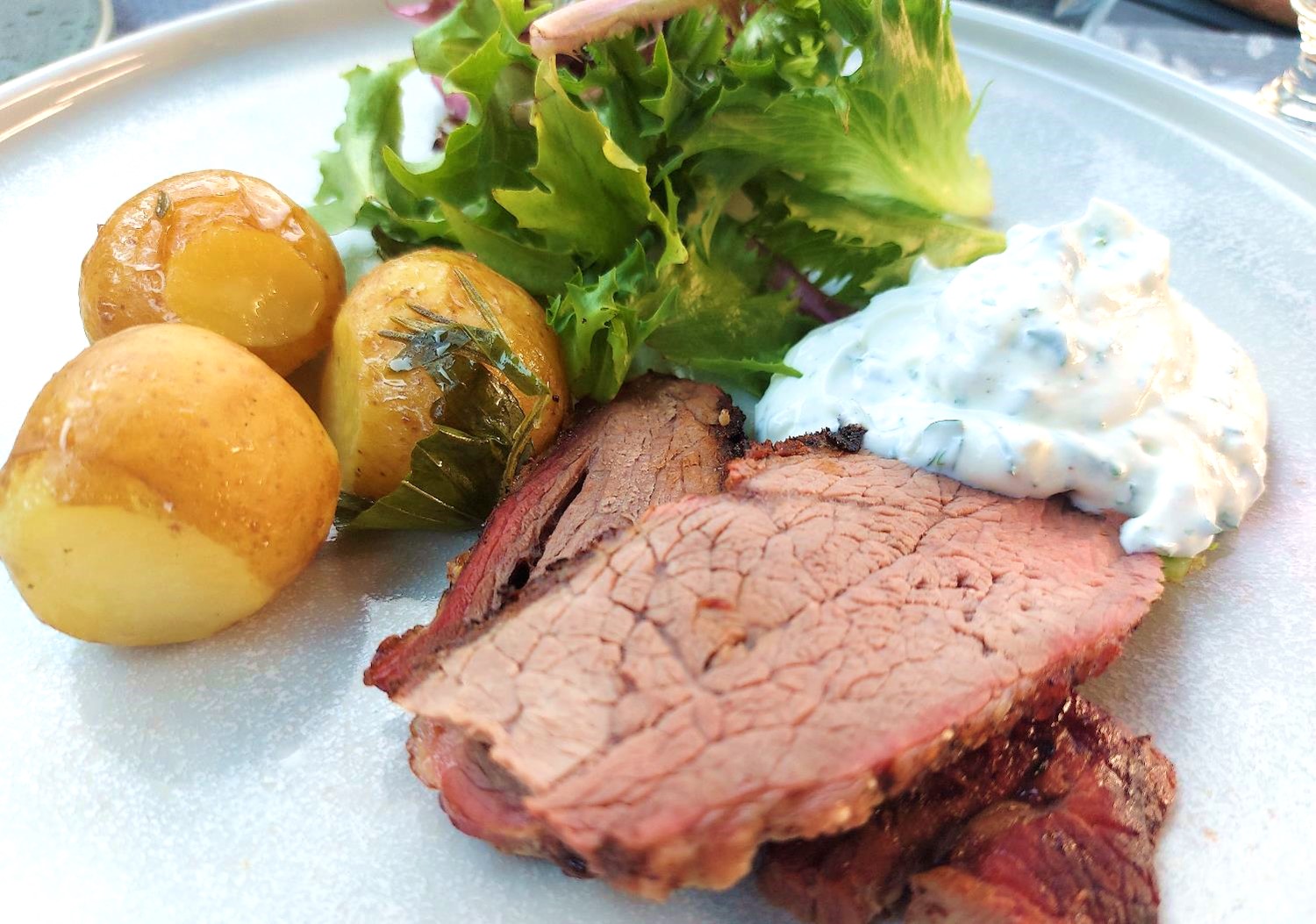 I bunden af fryseren gemte der sig en culottesteg fra dengang, vi havde charolaiskøer på marken. En stor fin steg på et par kilo. Den blev tilberedt i gasgrillen, og det blev både mørt og saftigt. Samtidig var det nemt – meget nemt.