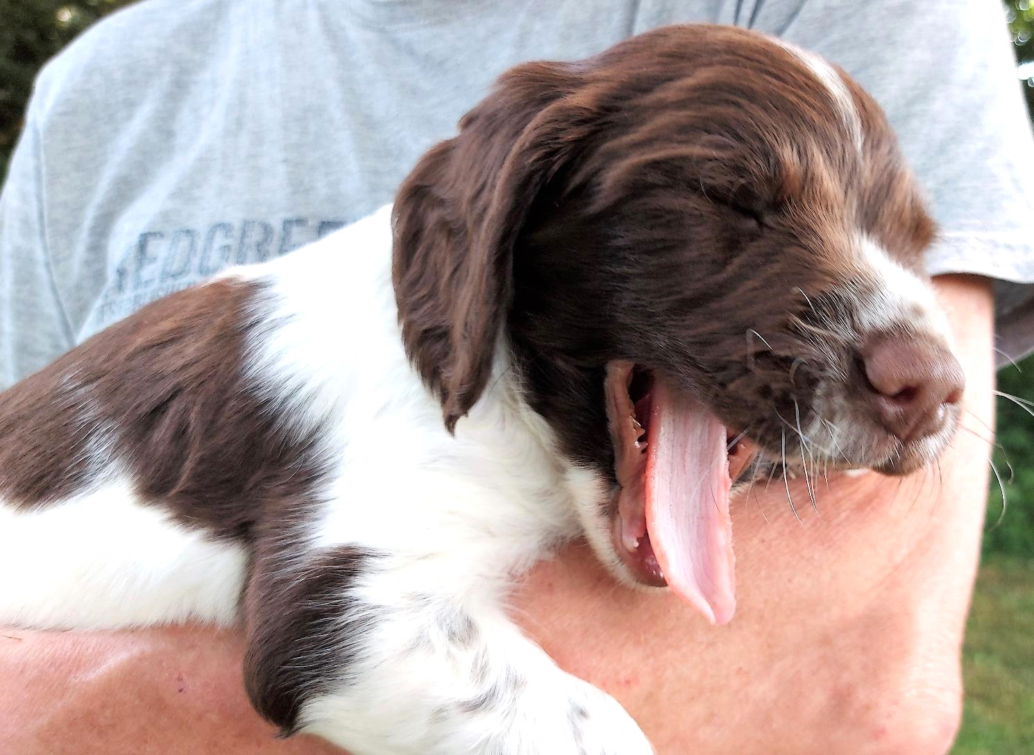 Vi ved det, for der vågner hvalpene og er klar til sjov. Det er vi ikke, og heldigvis falder de da også i søvn igen efter lidt tumlen.