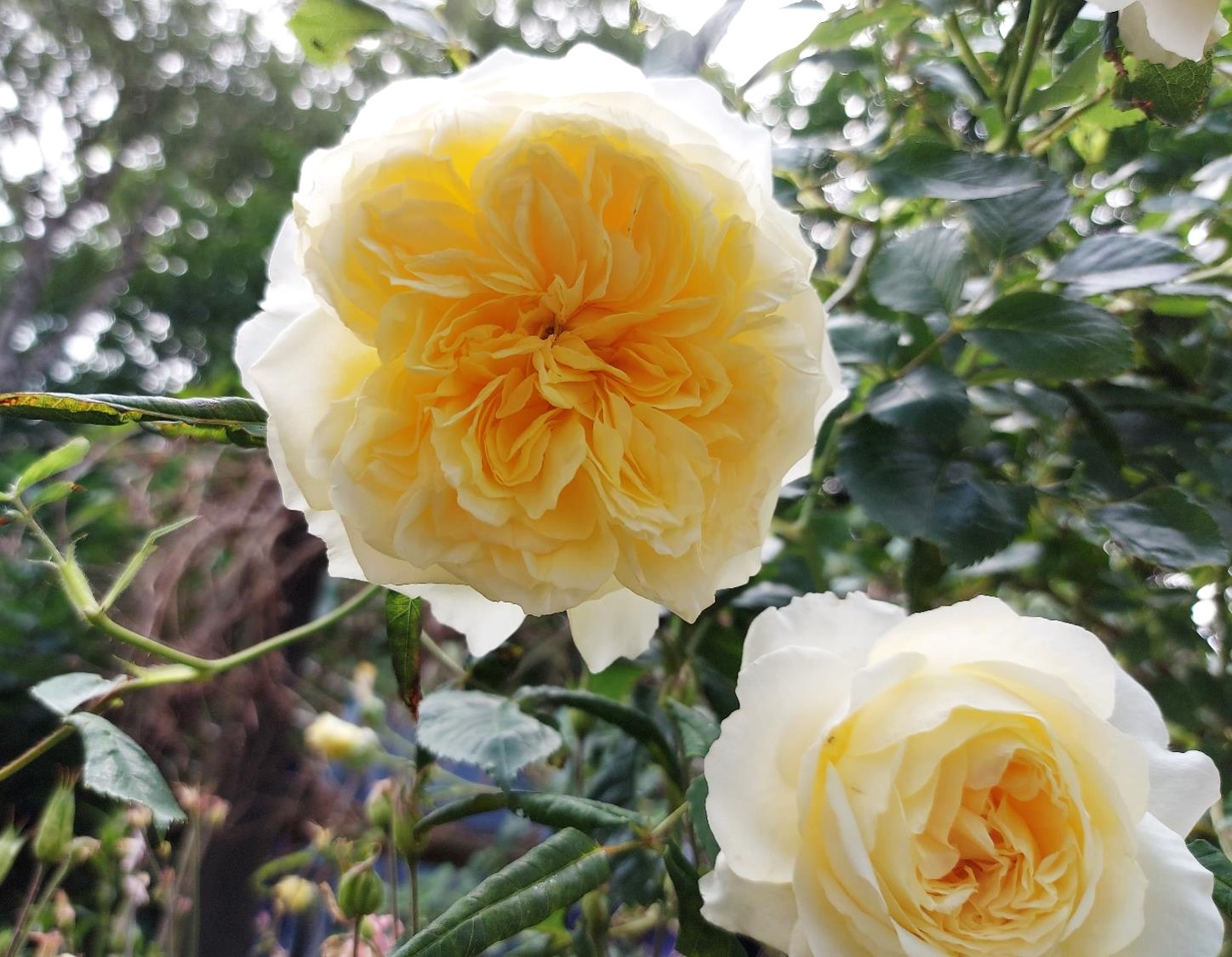 Midsommer i år er en tør affære. Selvom vi syntes, det regnede så voldsomt onsdag, kom der ikke mange millimeter. Og slet ikke nok til at gennemvæde den tørre jord. Vi har vandet roserne, og nu viser de deres glæde over de lokale byger i rodhøjde.
