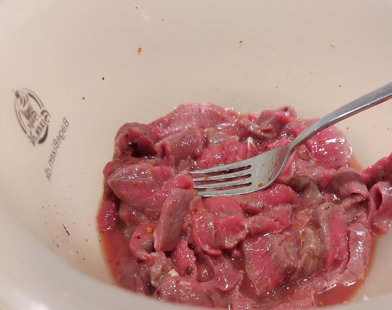 Kødstrimler gøres klar til stegning