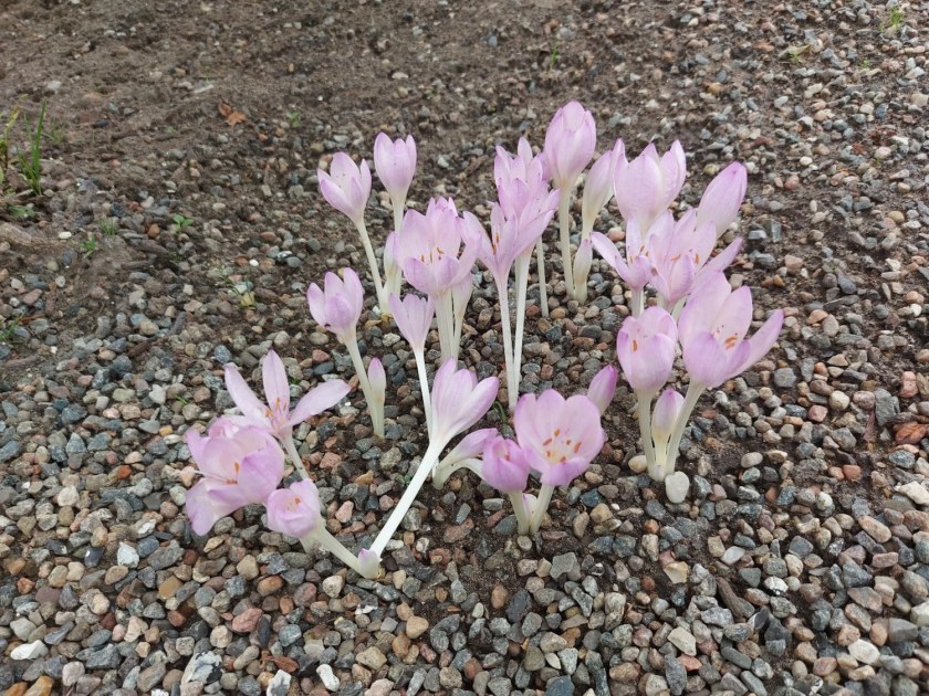 Sommer er det nu ikke længere. Æblerne modner, de første gule blade har vist sig på træerne, og i går mødte jeg Nøgenjomfru – også kendt som efterårskrokus og høsttidløs i gruset på en sti på Djursland, hvor jeg var med på tur til byen med det usædvanlige navn, Maria Magdalene.